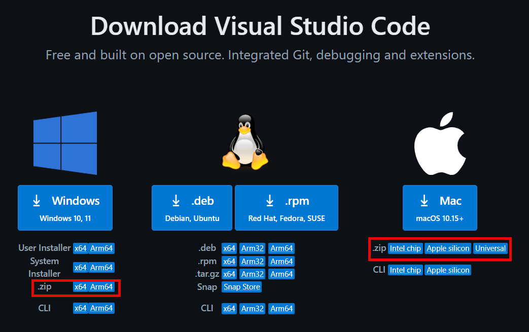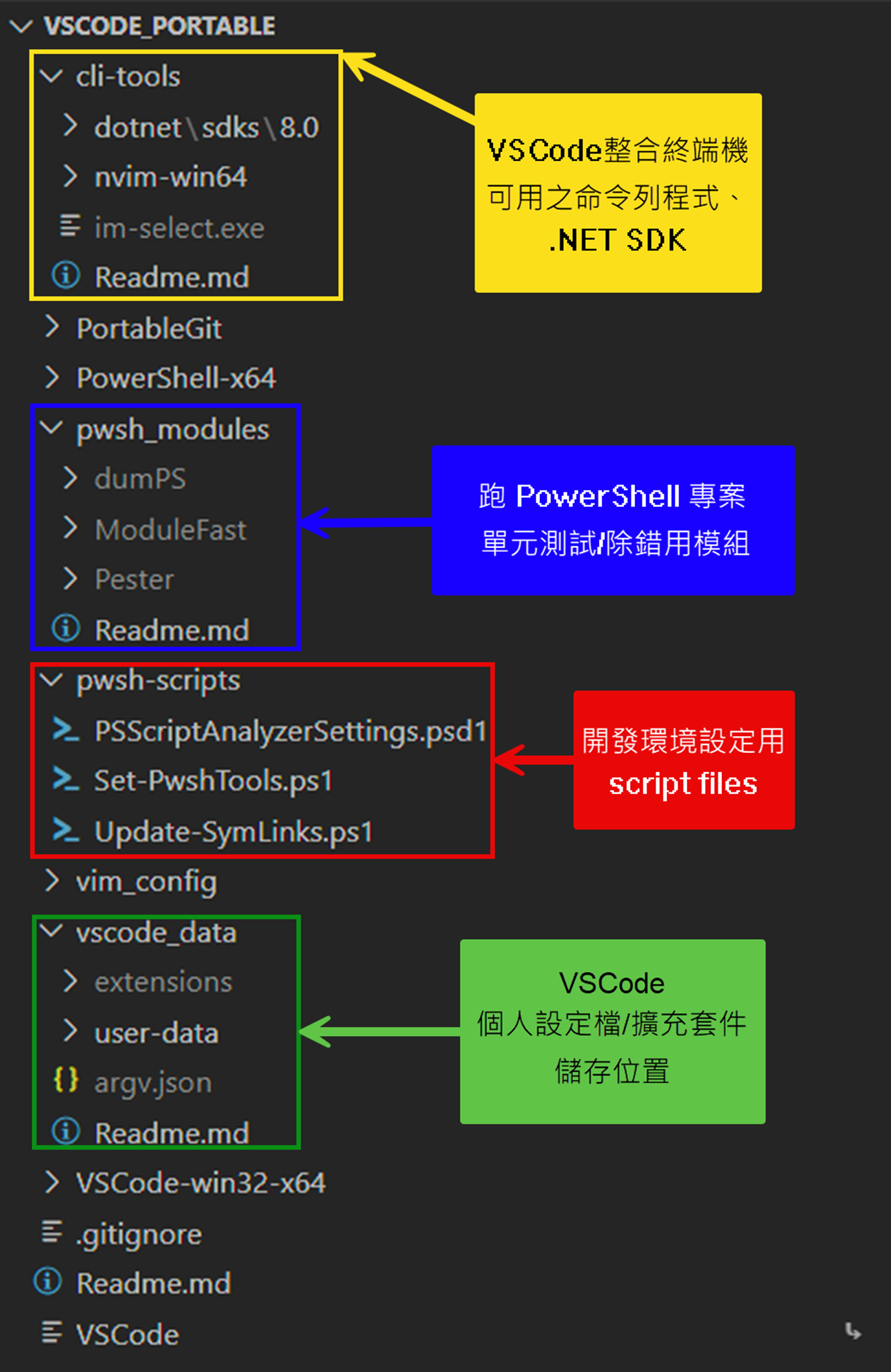 由於 .NET SDK 會根據作業系統&CPU架構不同而有不同的安裝方式,提供以下版本的 Portable VSCode + PowerShell Extension + C# 相關開發擴充套件 的範例開發環境: