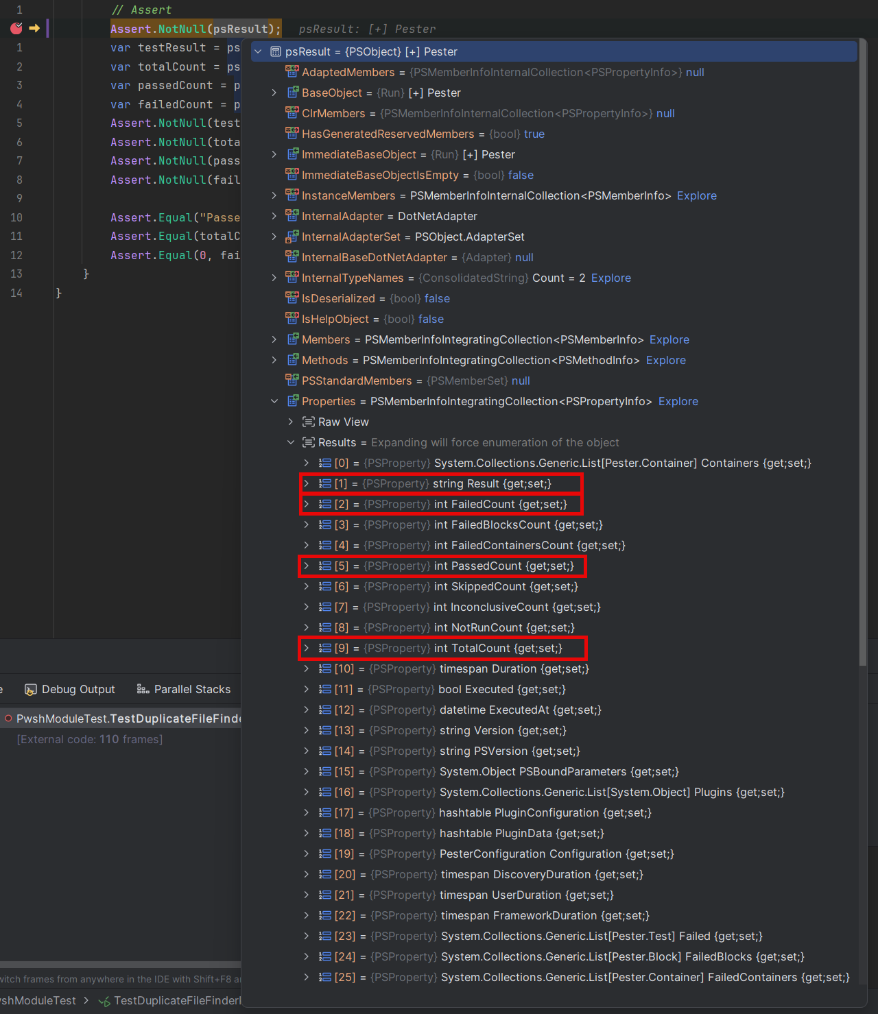5 var testResult = psResult.Properties["Result"].Value as string;
