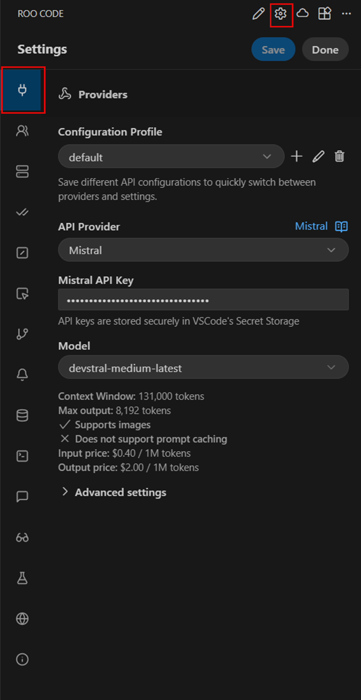 Roo Code 擴充套件也支援使用 Mistral AI 模型,官方說明:https://docs.roocode.com/providers/mistral